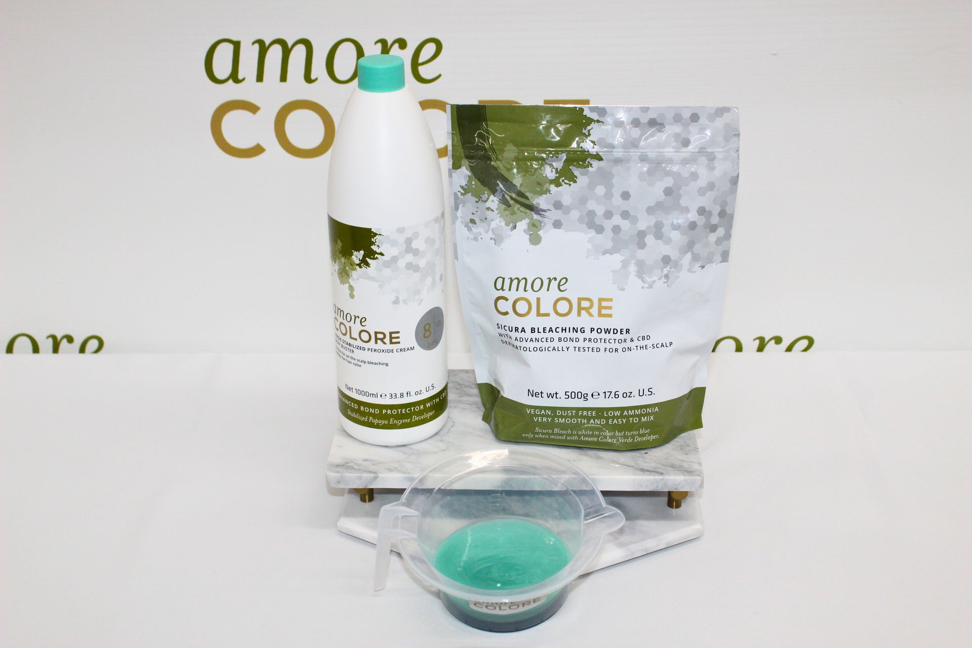 - White in color but turns blue only when mixed with Amore Colore Verde Developer to control warmth